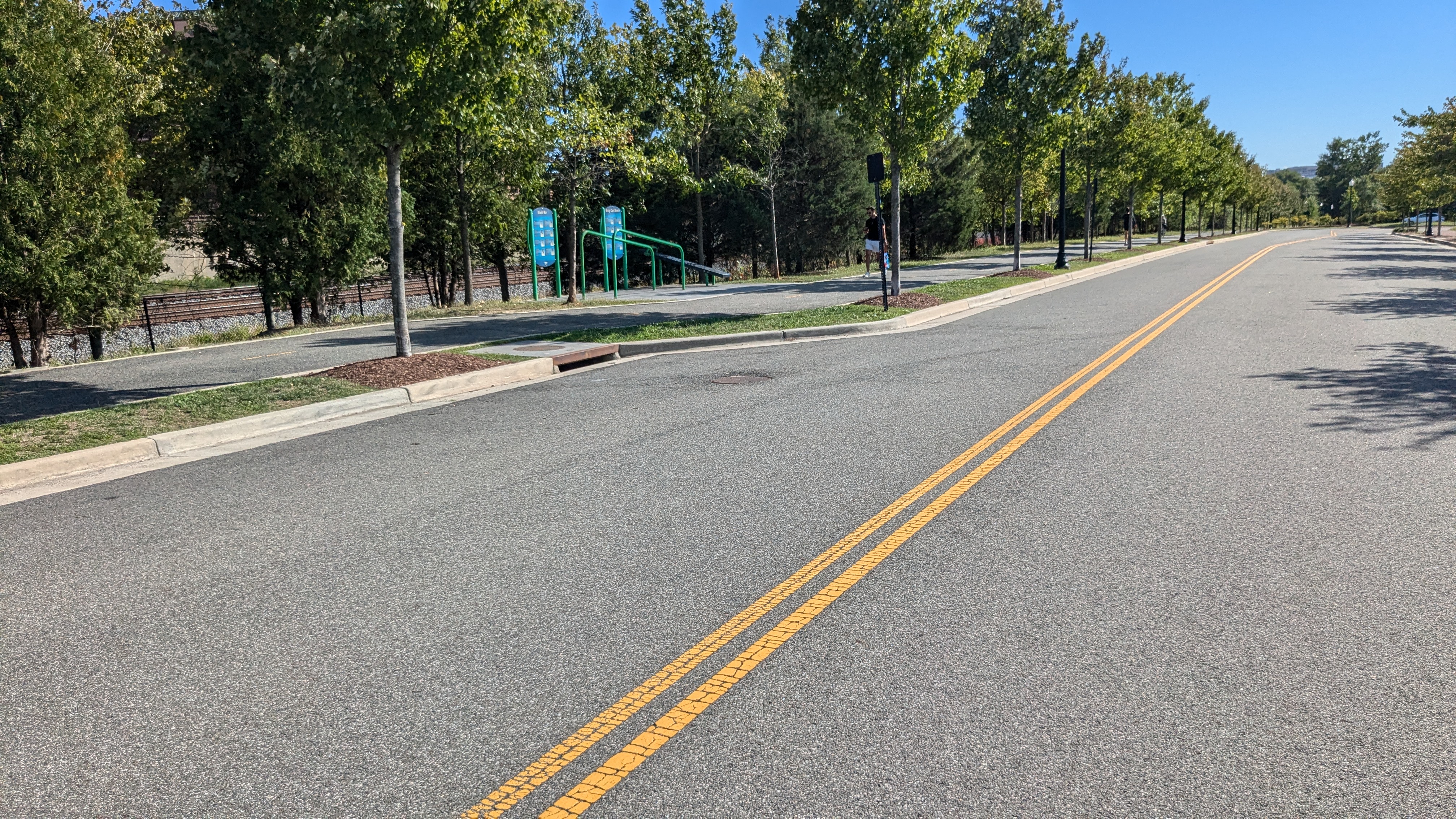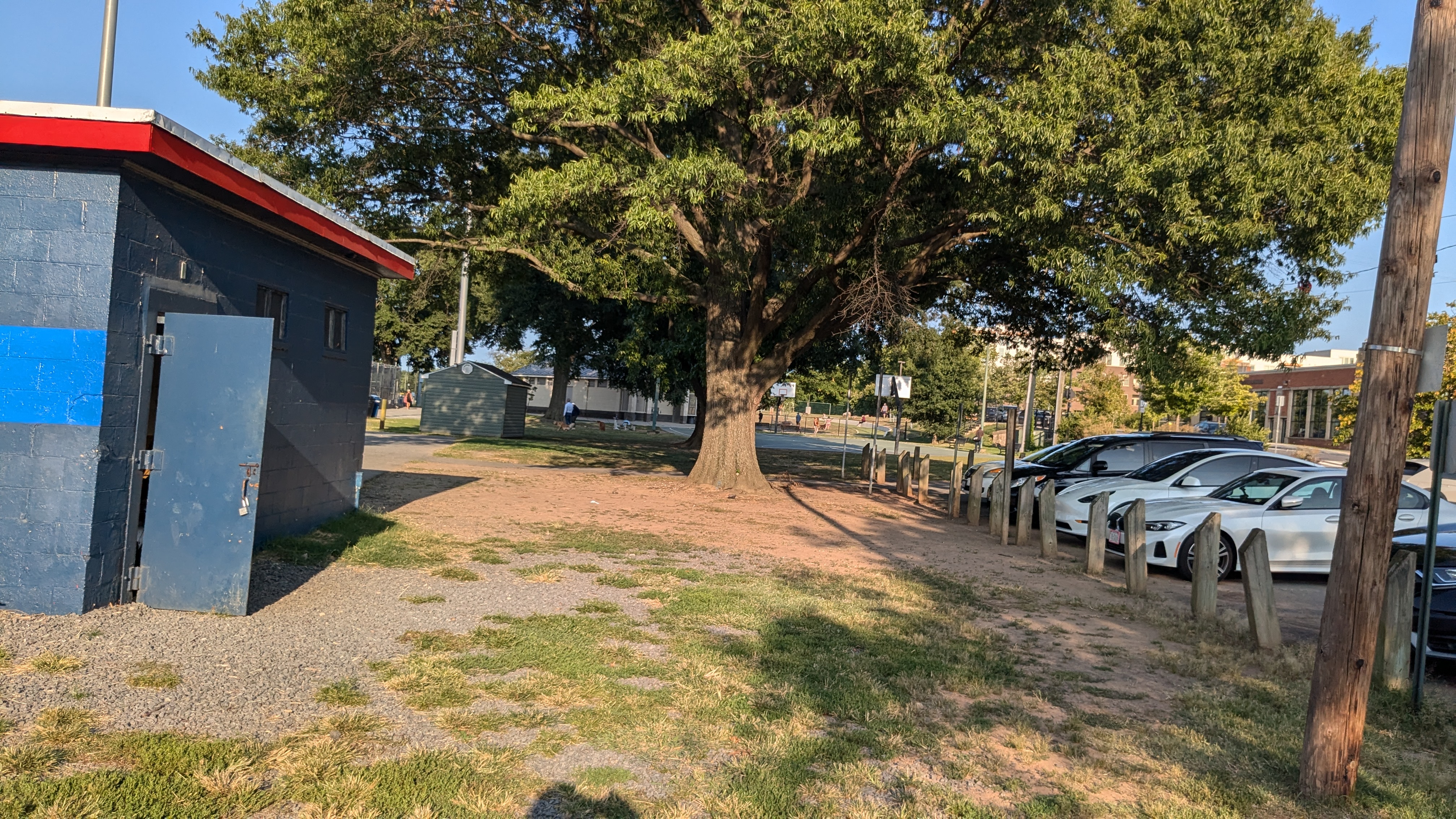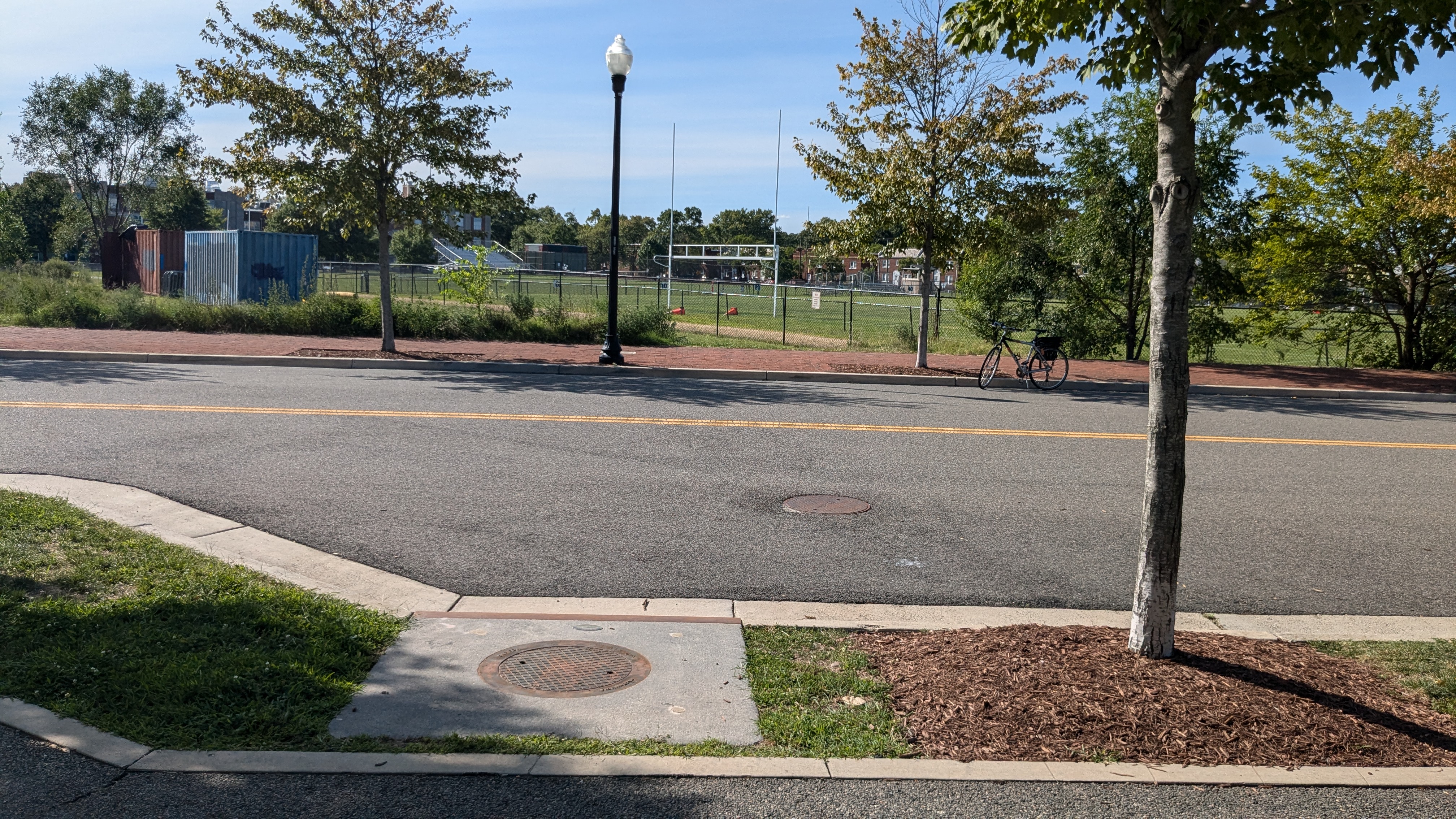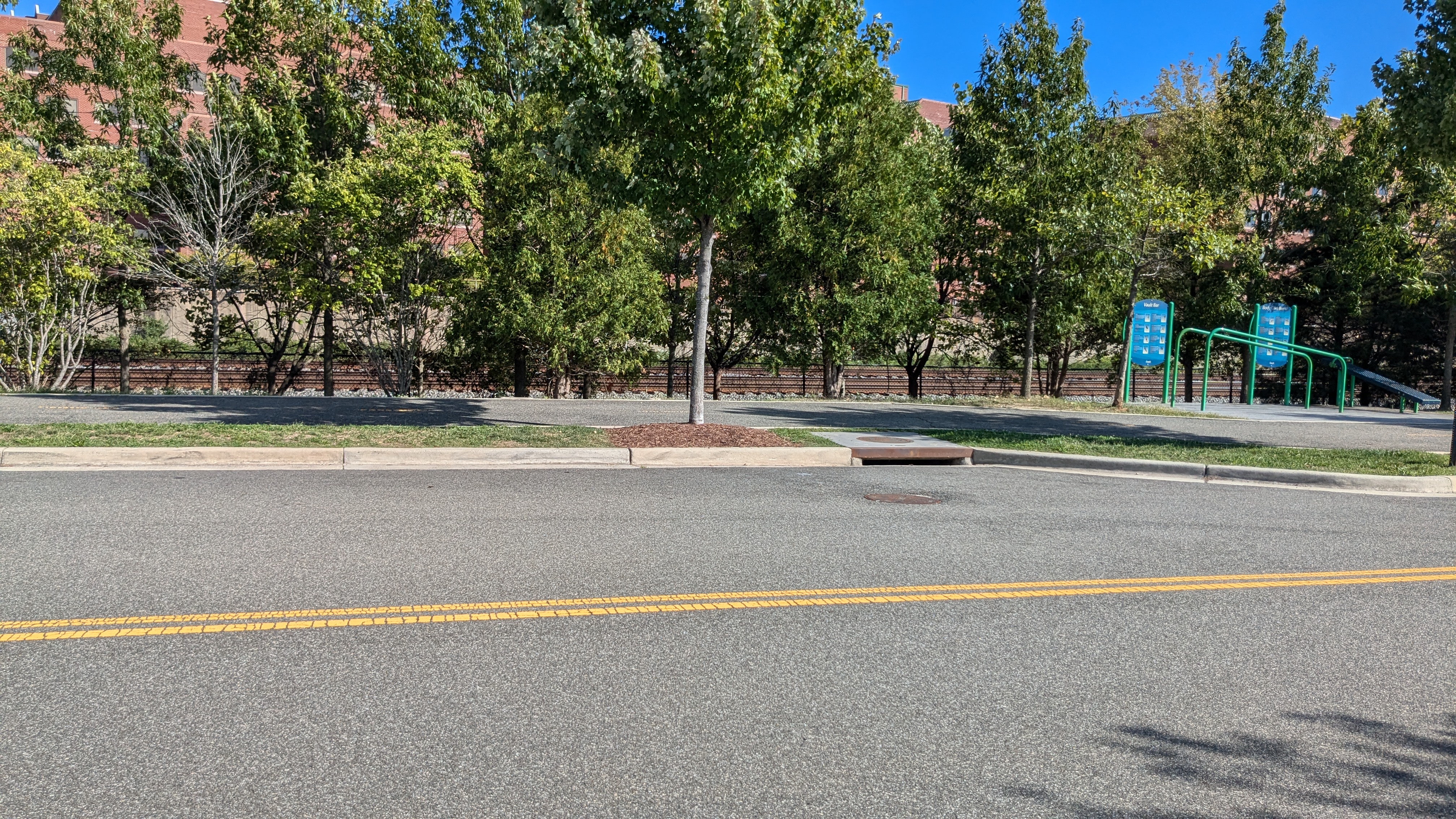 | Facing the east, where the site backs up to busy railroad and metro tracks. | Facing south, where the site backs up to athletic fields. | Facing west, where the site backs up to athletic fields. | Facing north, where the site backs up to athletic fields and the nearest buildings are more than 100 yards away. |