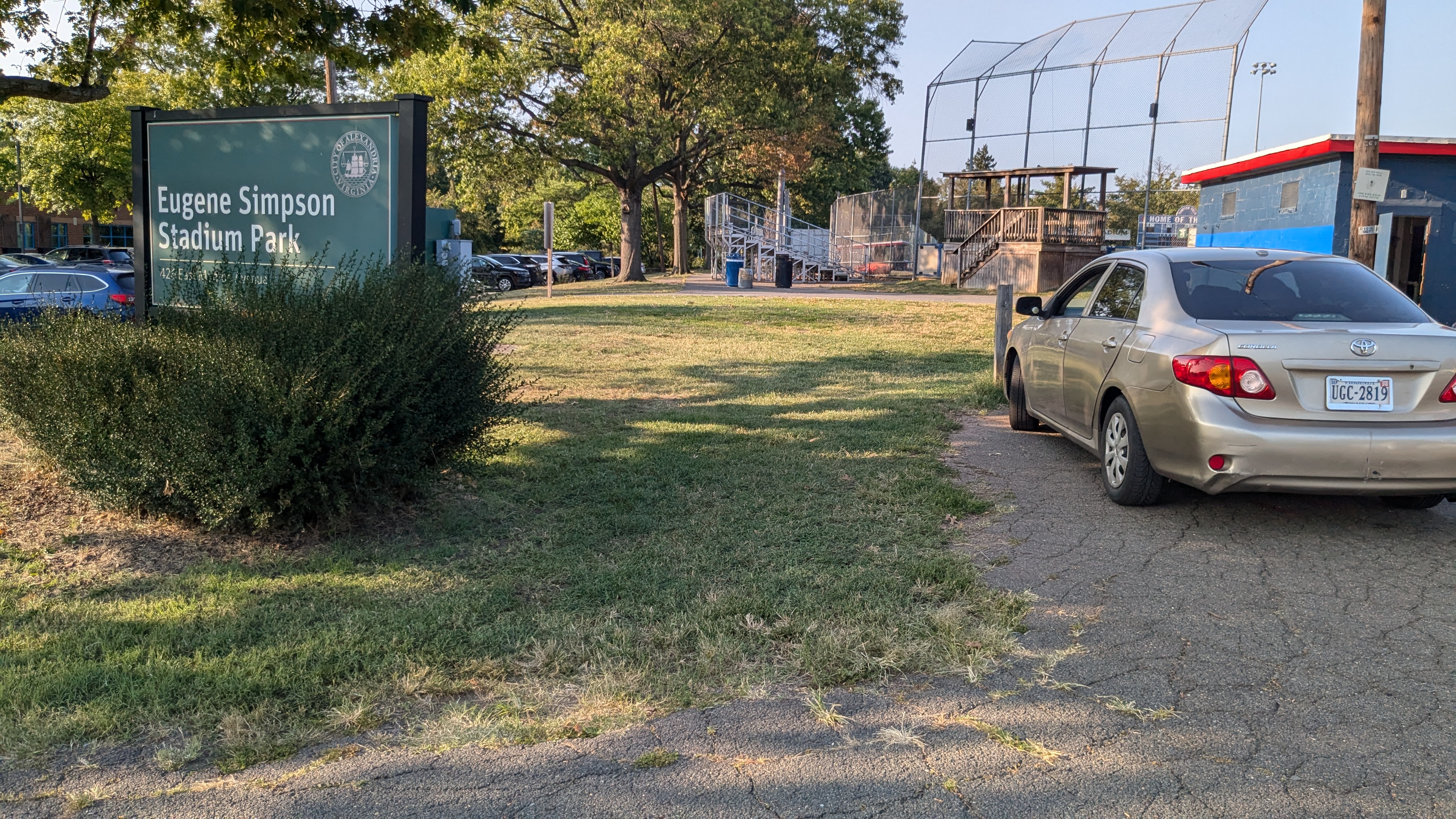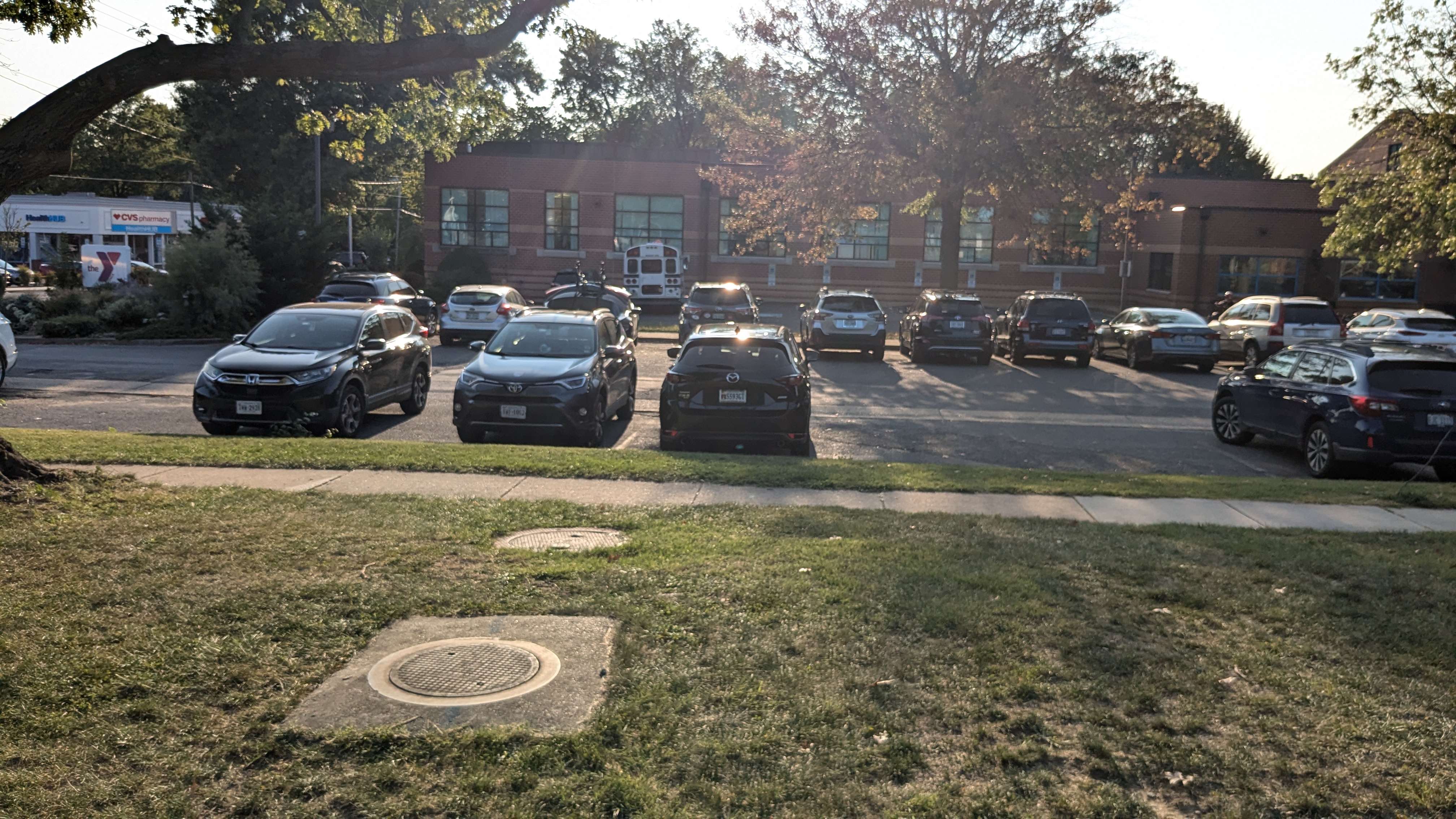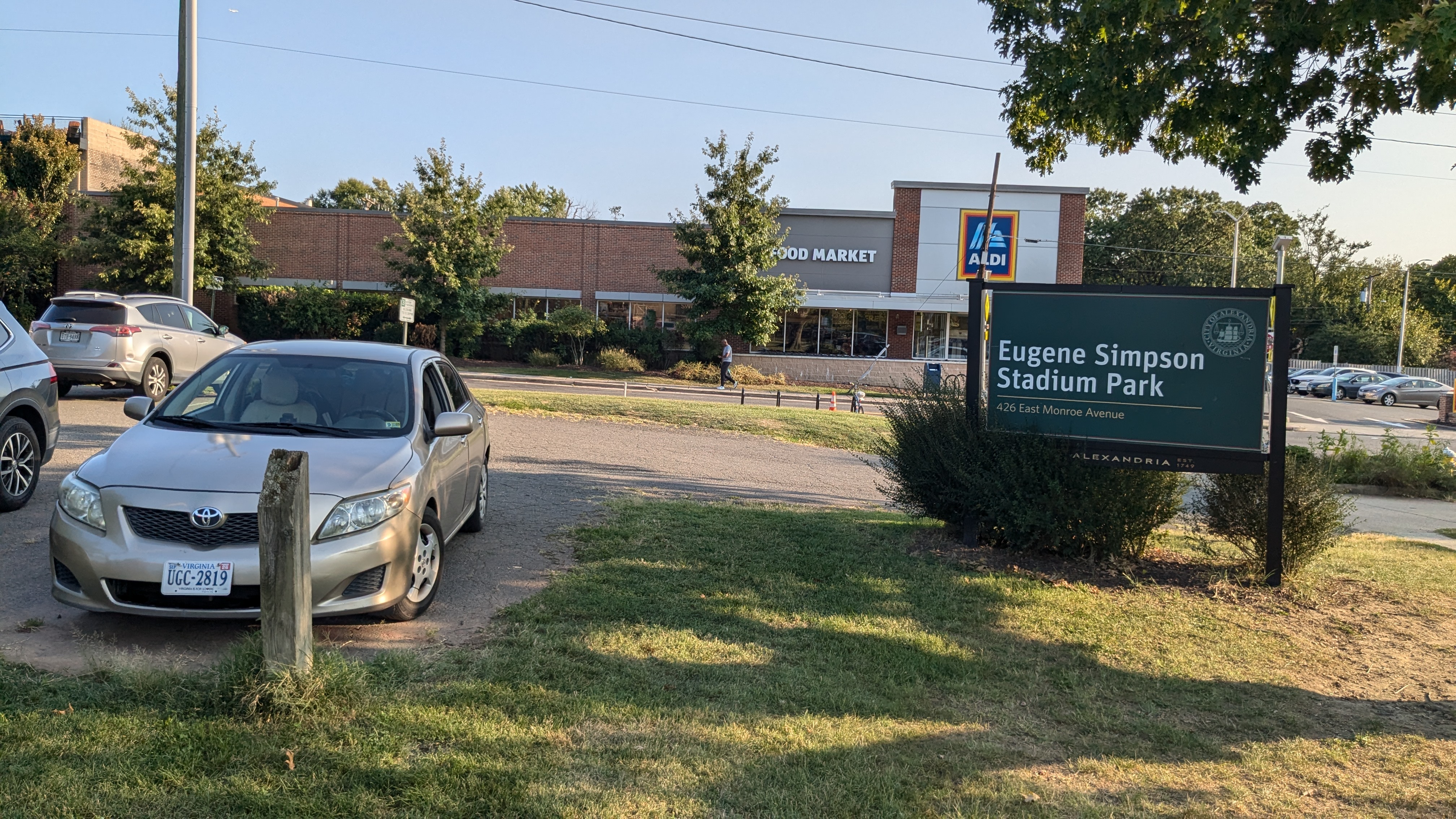 | Facing the east, where the site backs up to athletic fields and Route 1 and train tracks beyond the fields. | Facing south, where the site backs up to Monroe Avenue -- an arterial street -- and a shopping center. This location would be convenient for shoppers. | Facing west, where the site backs up to the YMCA. This location would be convenient for YMCA patrons. | Facing north, where the site backs up to athletic fields. |